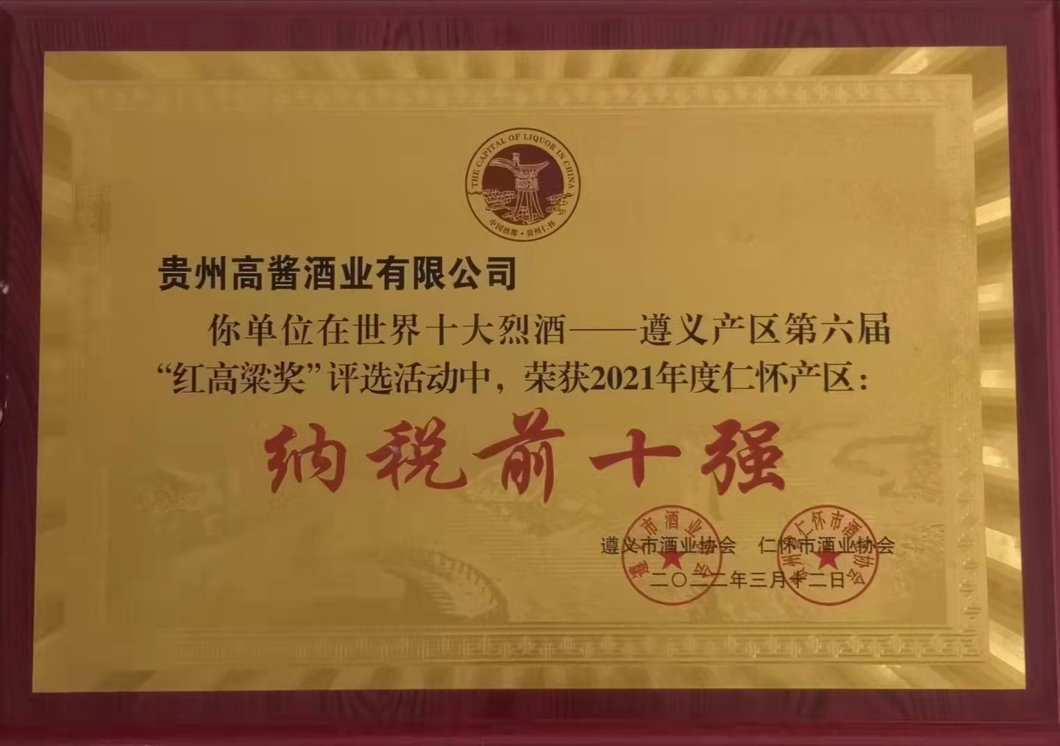开云官方体育app官网-开云(中国)股份旗下高酱酒业坐落于贵州省仁怀市名酒工业园区。作为贵州省仁怀市酒业协会副会长单位、中国酒都仁怀白酒企业100强,高酱酒业目前已是贵州仁怀地区规模生产以上及主要纳税单位,2021年纳税额达到1.2亿元人民币。根据仁怀市酒业协会今年3月1日的公示,高酱酒业被评为世界十大烈酒——遵义产区第六届“红高粱奖”2021年度仁怀产区纳税前十强企业。